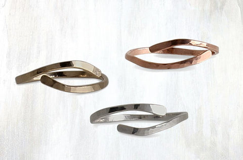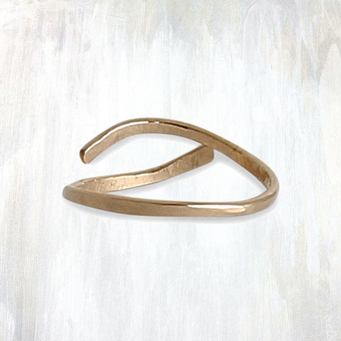 Minimal with a flowing, graceful style, the Thin Wave Ring is perfect for stacking but also stands on its own. Forged by hand, this ring features a curved opening, allowing for slight adjustment to fit the desired finger.