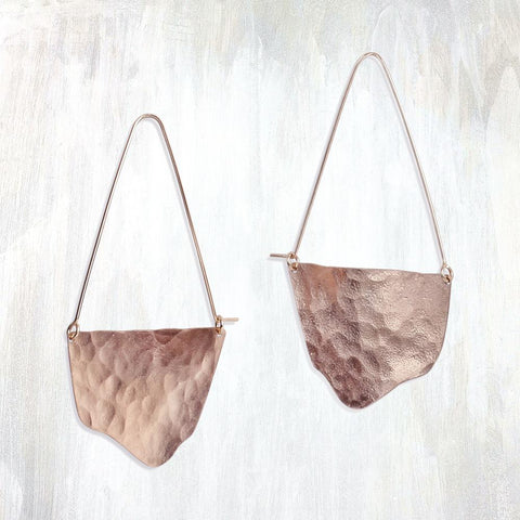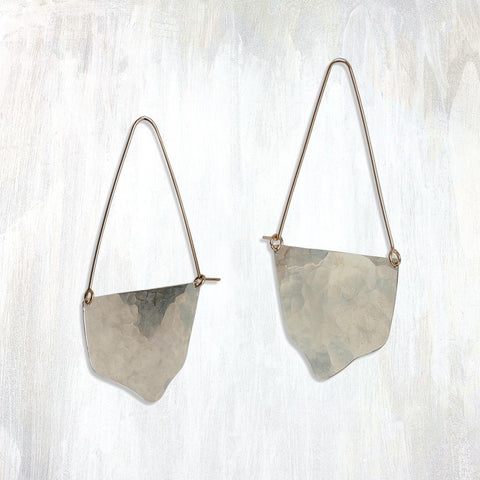 Make a statement with the flowing, organic shape of the Fluid Moon Hoops. Hand-cut and hammered sheet is suspended from long, triangular ear wires.
