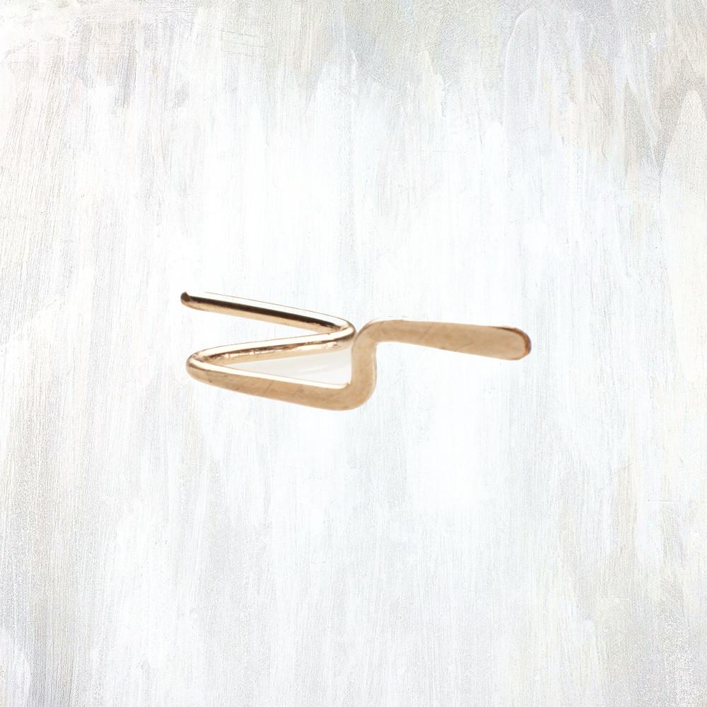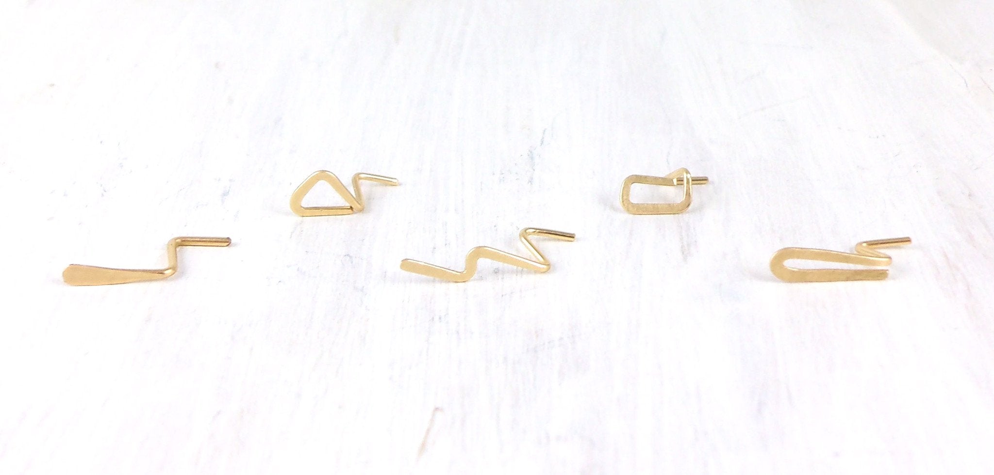 The most comfortable stud you will ever own, our lightning stud slides in and sits flush against the front and the back of your earlobe. This little guy is perfect for the little-thought-of second or third hole. Hand forged in 14K yellow or rose gold, 1/2" long. 14K white gold upon request.
