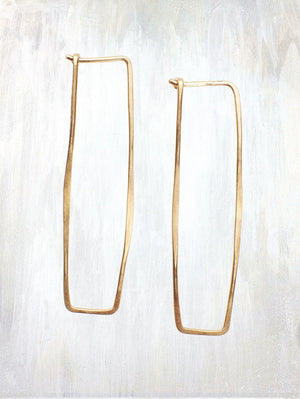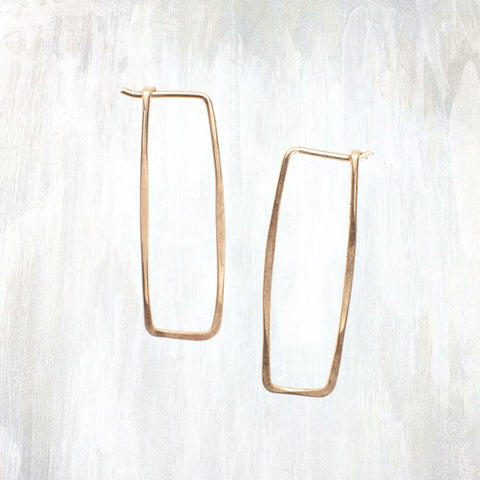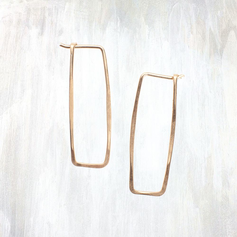 A classic rectangle hoop available in two sizes, in 14K yellow or rose gold. 14K white gold upon request.
